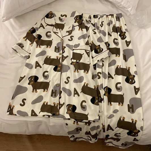 Dachshund Women's Pajamas Set Short Sleeve Tops Full Length Pants Sleepwear