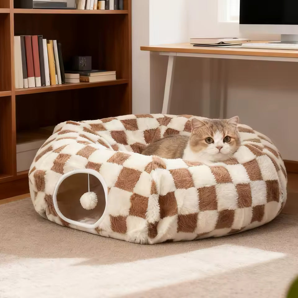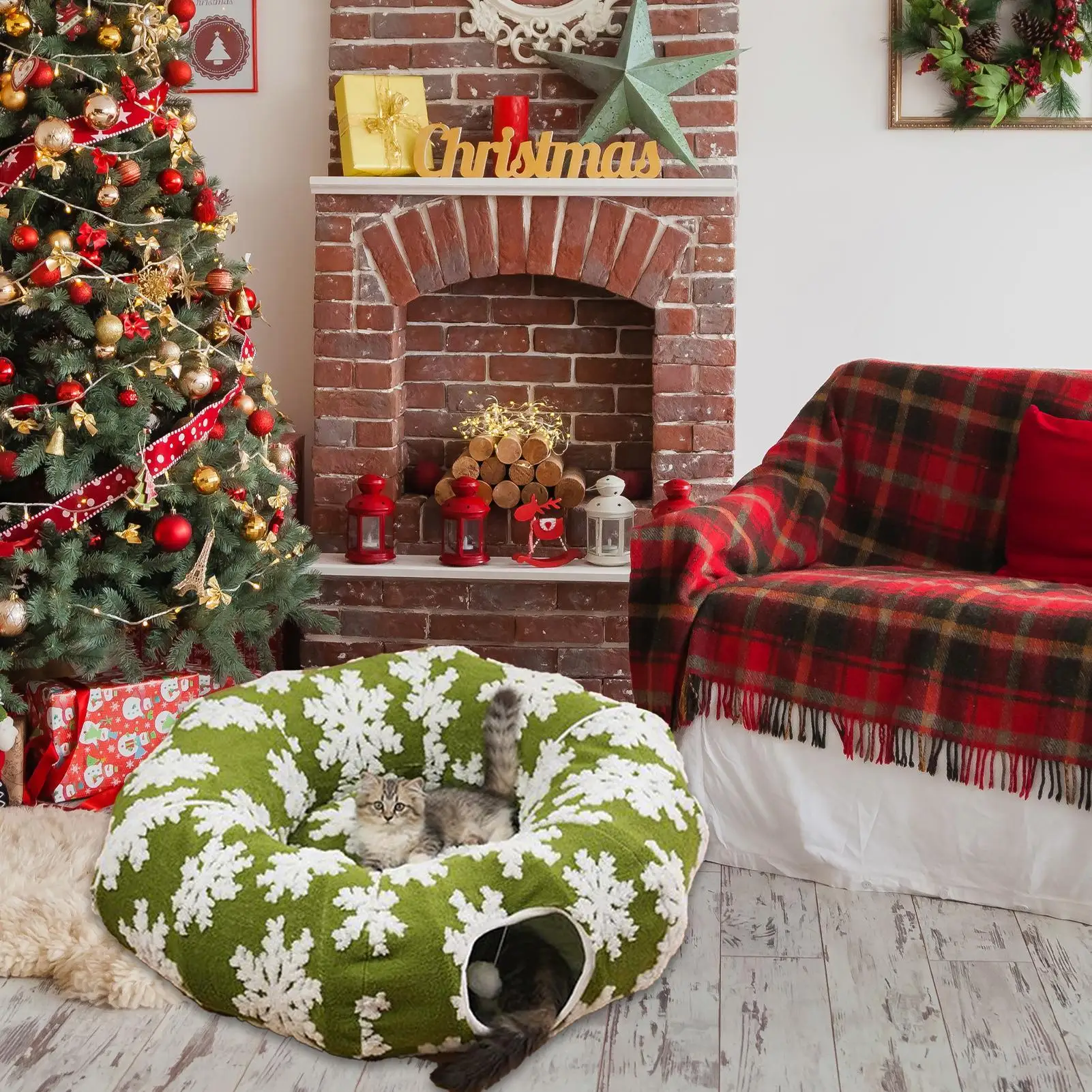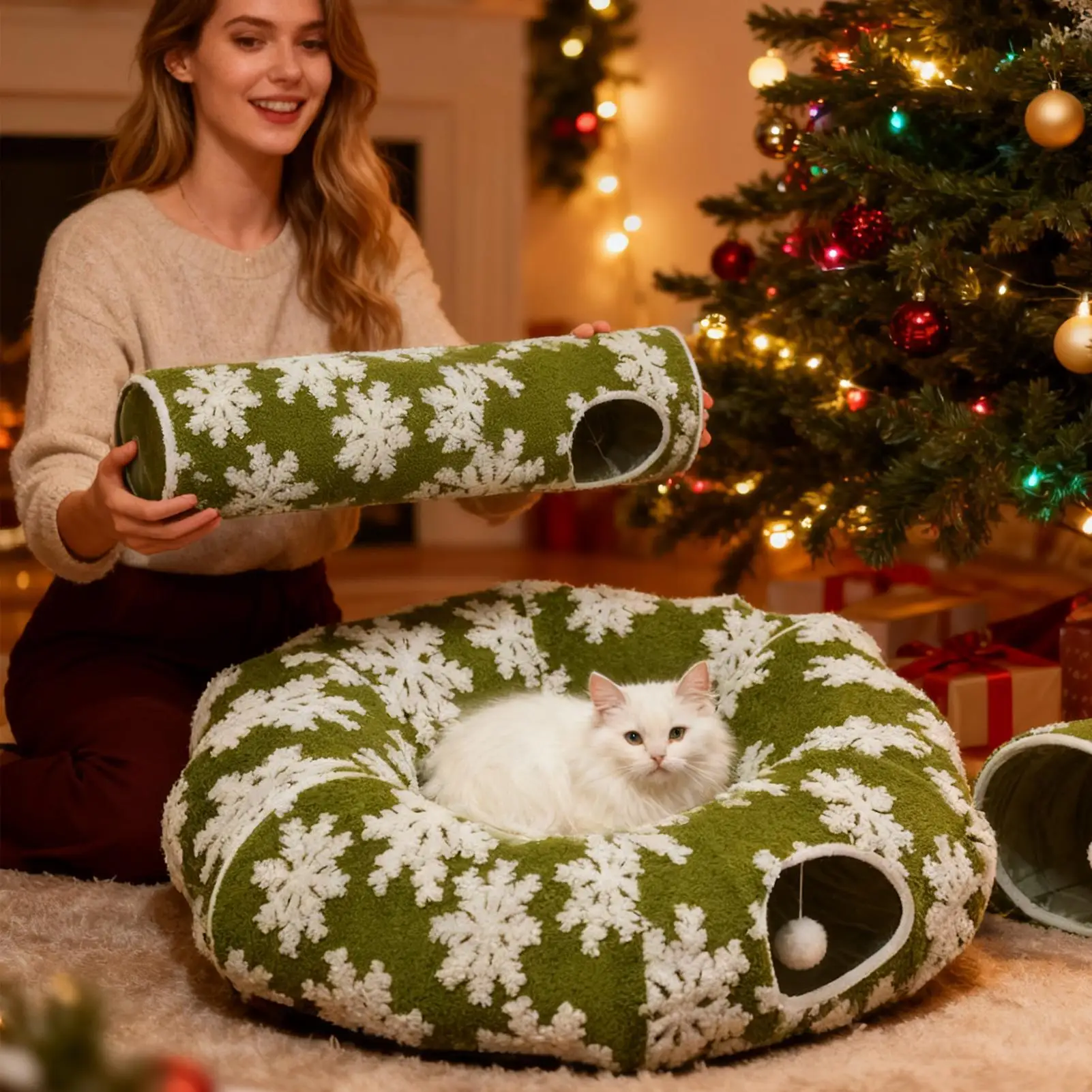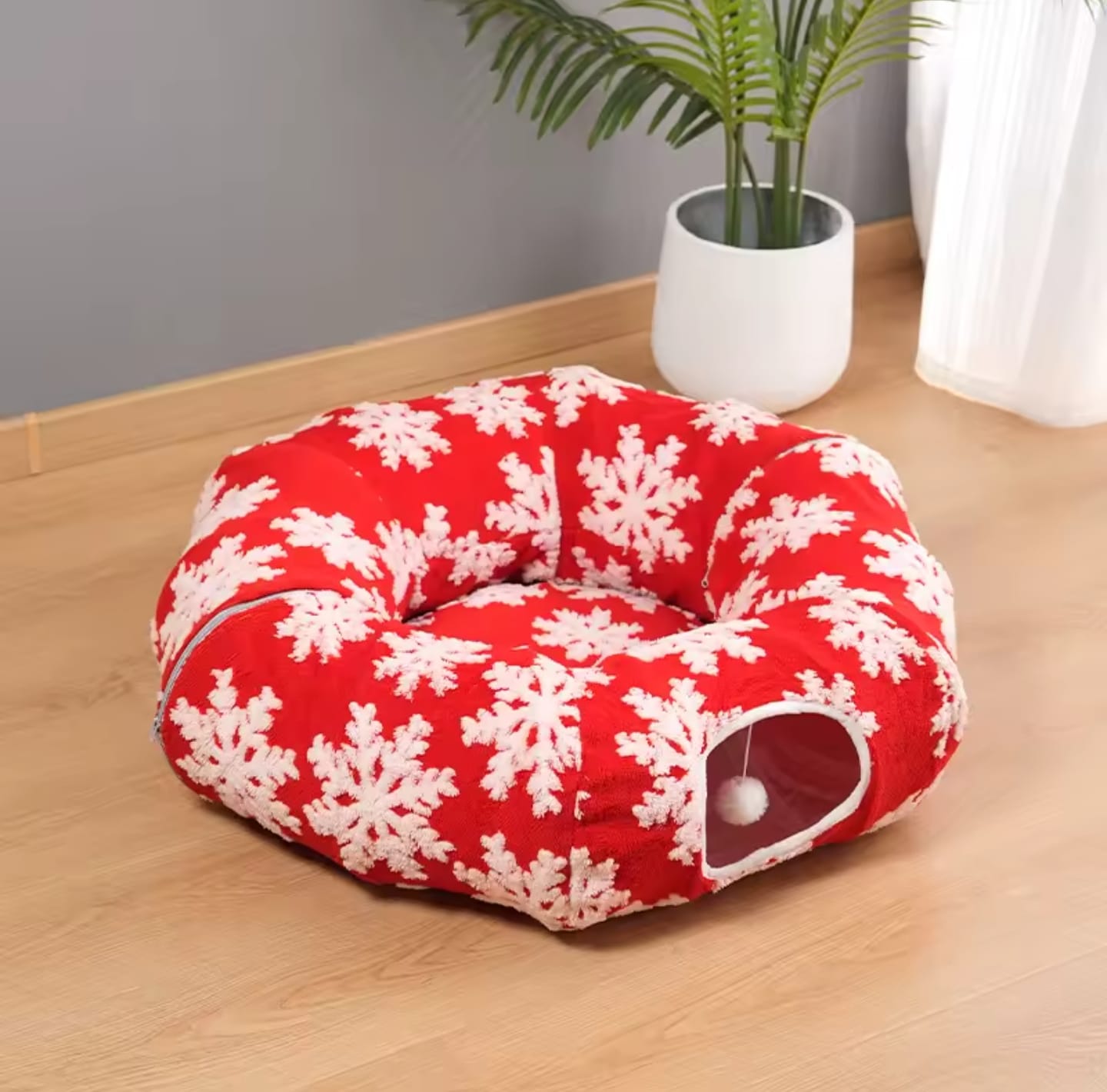 1.Festive Pet Harmony: By merging a comfortable bed with an exciting tunnel, the Christmas Cat Tunnel Bed creates a pet-centric tree ambiance that complements holiday-themed interiors