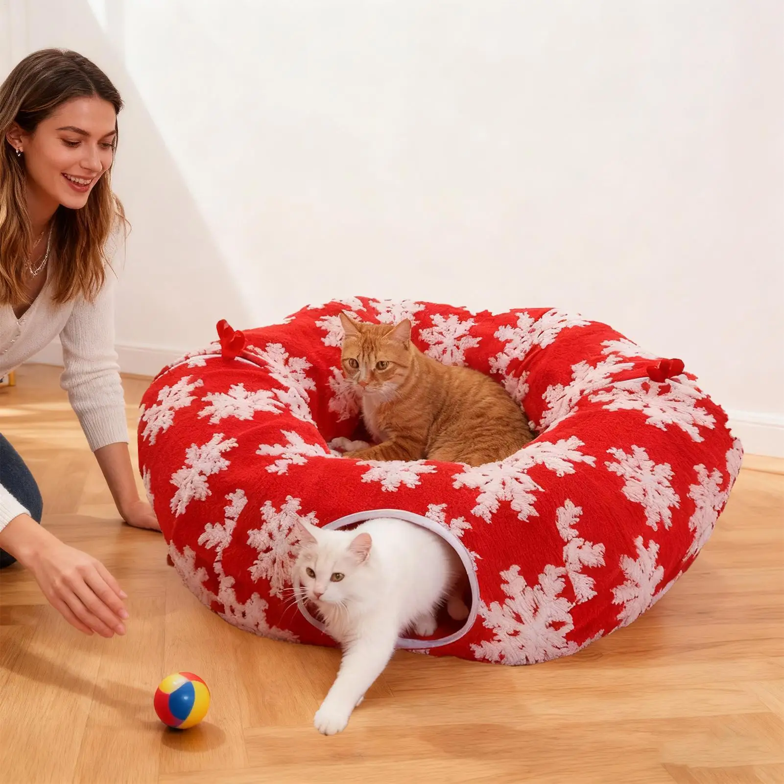 2.Wear-resistant Material: Featuring a reliable non-slip design, the Christmas Cat Bed Tunnel creates a steady play zone where cats can freely interact with their surroundings, promoting active indoor fun