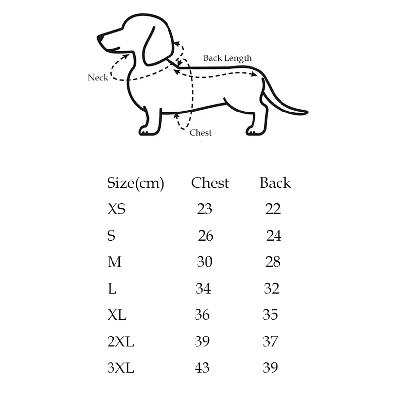 ❤Please measure the dog's front chest (chest 1) and back abdomen (chest 2)